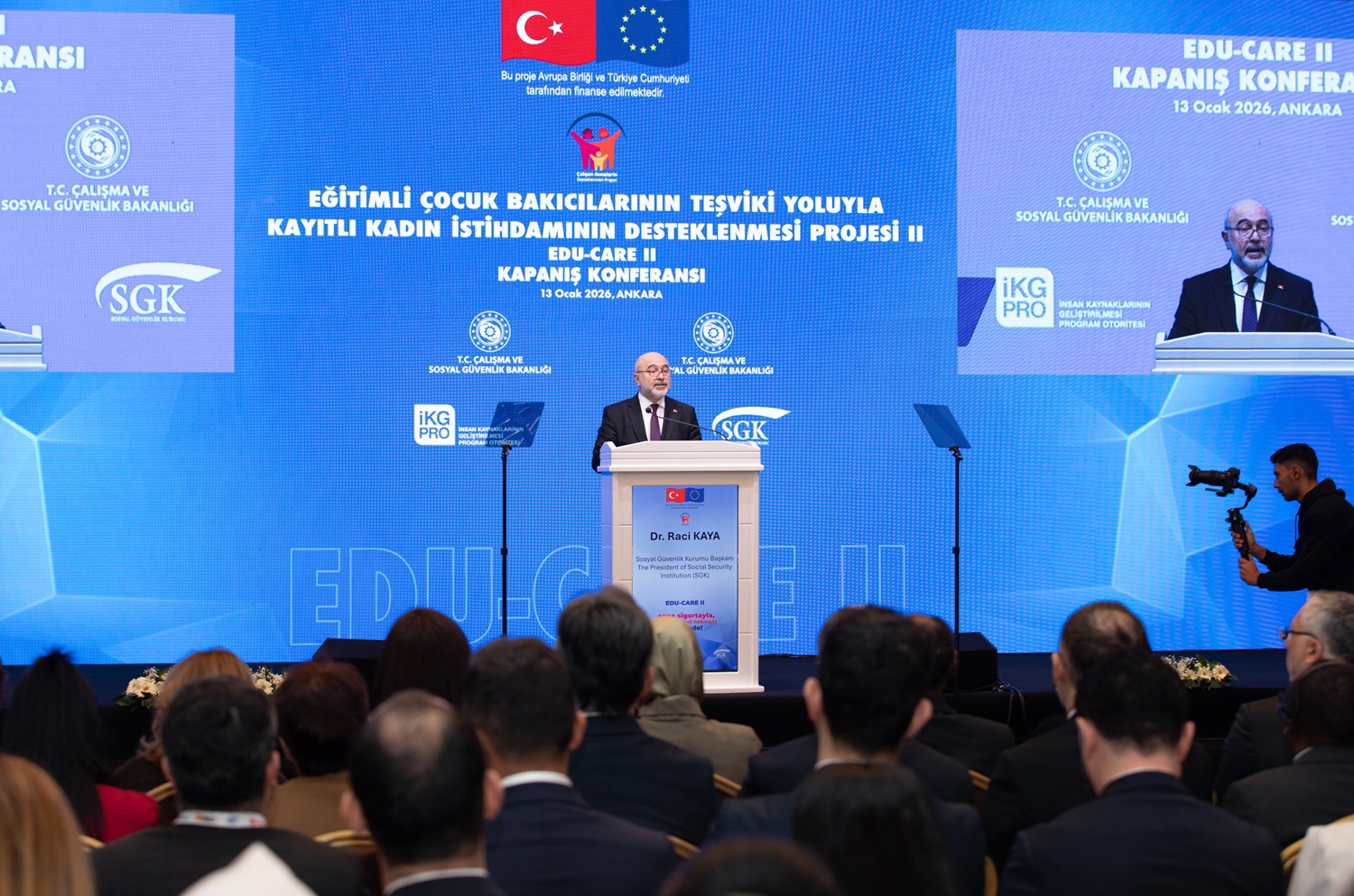 Çalışma ve Sosyal Güvenlik Bakanı Prof. Dr. Vedat Işıkhan, Çalışma ve Sosyal Güvenlik Bakanlığı tarafından düzenlenen, “Eğitimli Çocuk Bakıcılarının Teşviki Yoluyla Kayıtlı Kadın İstihdamının Desteklenmesi Projesi’nin (EDU-CARE II)” kapanış programında bir konuşma yaptı.